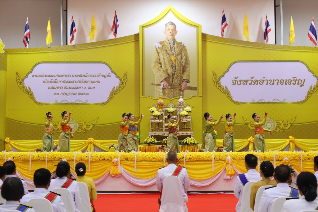 พล.ต.ต.มารุต เรืองจินตนา ผบก.ภ.จว.อำนาจเจริญ ร่วมงานสโมสรสันติบาตเฉลิมพระเกียรติ พระบาทสมเด็จพระเจ้าอยู่หัว เนื่องในโอกาสพระราชพิธีมหามงคลเฉลิมพระชนมพรรษา 6 รอบ 28 กรกฎาคม 2567 โดยมี ว่าที่พันตรี อดิศักดิ์ น้อยสุวรรณ ผู้ว่าราชการจังหวัดอำนาจเจริญ เป็นประธานในพิธี ณ หอประชุมจังหวัดอำนาจเจริญ