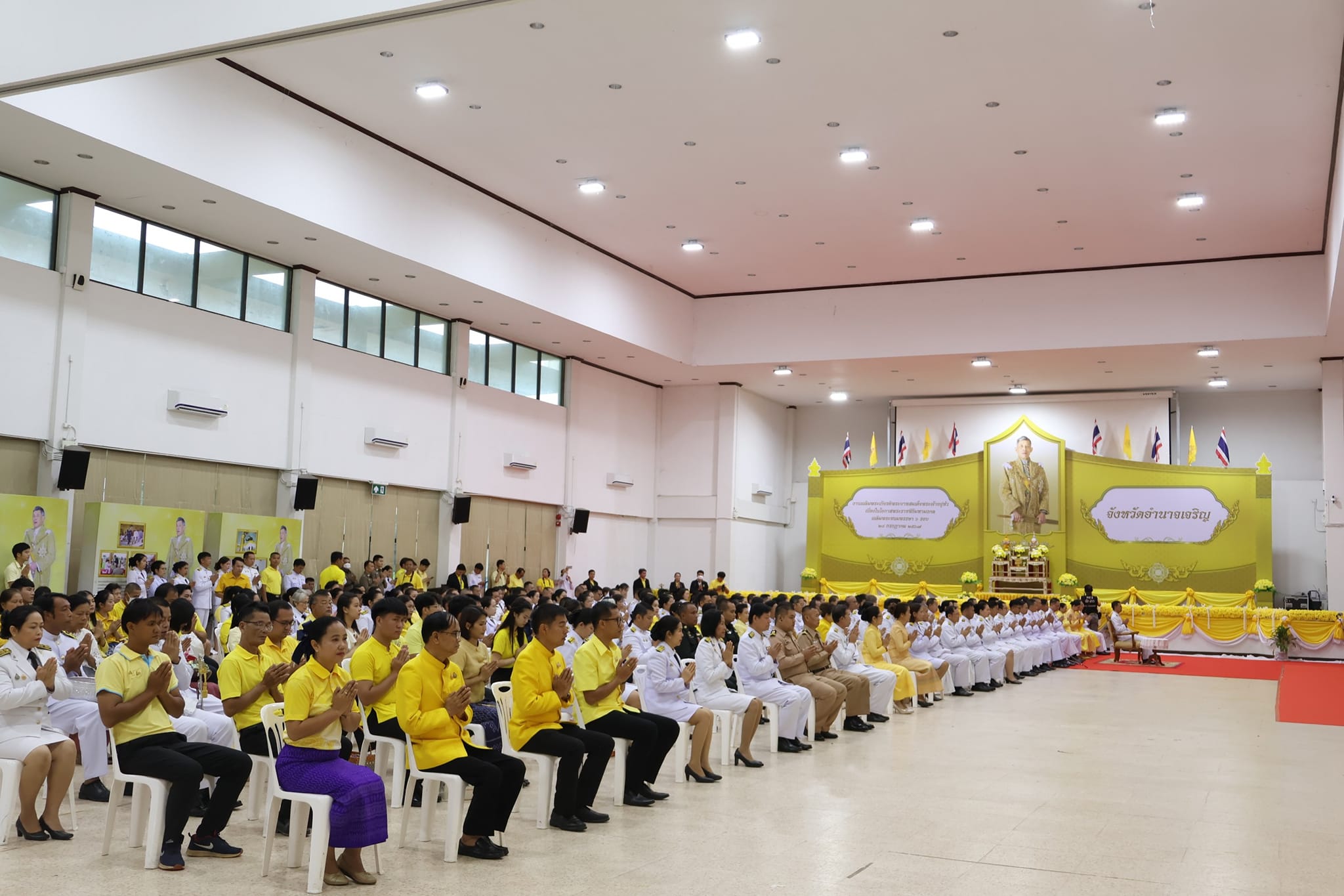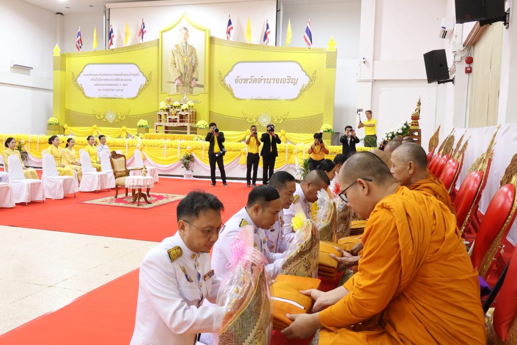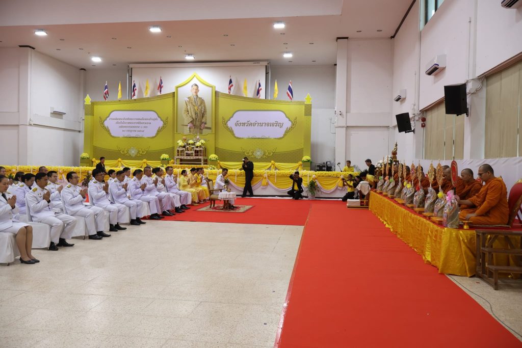 วันที่ 28 ก.ค.67 เวลา 06.30 น.พล.ต.ต.มารุต เรืองจินตนา ผบก.ภ.จว.อำนาจเจริญ มอบให้ พ.ต.อ.วิเชียร โชคพิพัฒน์ทวี รอง ผบก.ภ.จว.อำนาจเจริญ พร้อมข้าราชตำรวจในสังกัด ร่วมพิธีเจริญพระพุทธมนต์และพิธีทำบุญตักบาตรถวายพระราชกุศล พระบาทสมเด็จพระเจ้าอยู่หัว เนื่องในโอกาสวันเฉลิมพระชนมพรรษา 28 กรกฎาคม 2567 ณ หอประชุมจังหวัดอำนาจเจริญ สวนเฉลิมพระเกียรติฯ 80 พรรษา อ.เมืองอำนาจเจริญ จว.อำนาจเจริญ โดยมี นายเสนีย์ ส้มเขียวหวาน รองผู้ว่าราชการจังหวัดอำนาจเจริญ เป็นประธานในพิธี