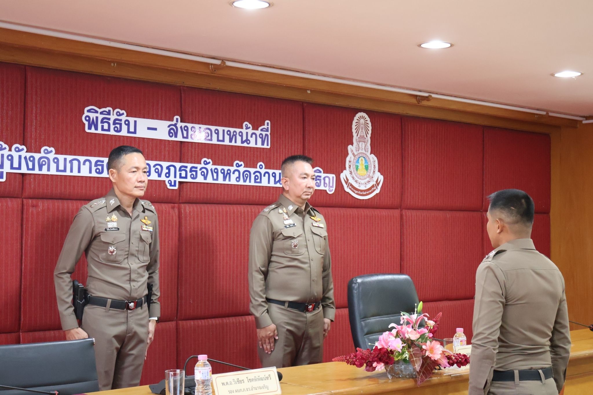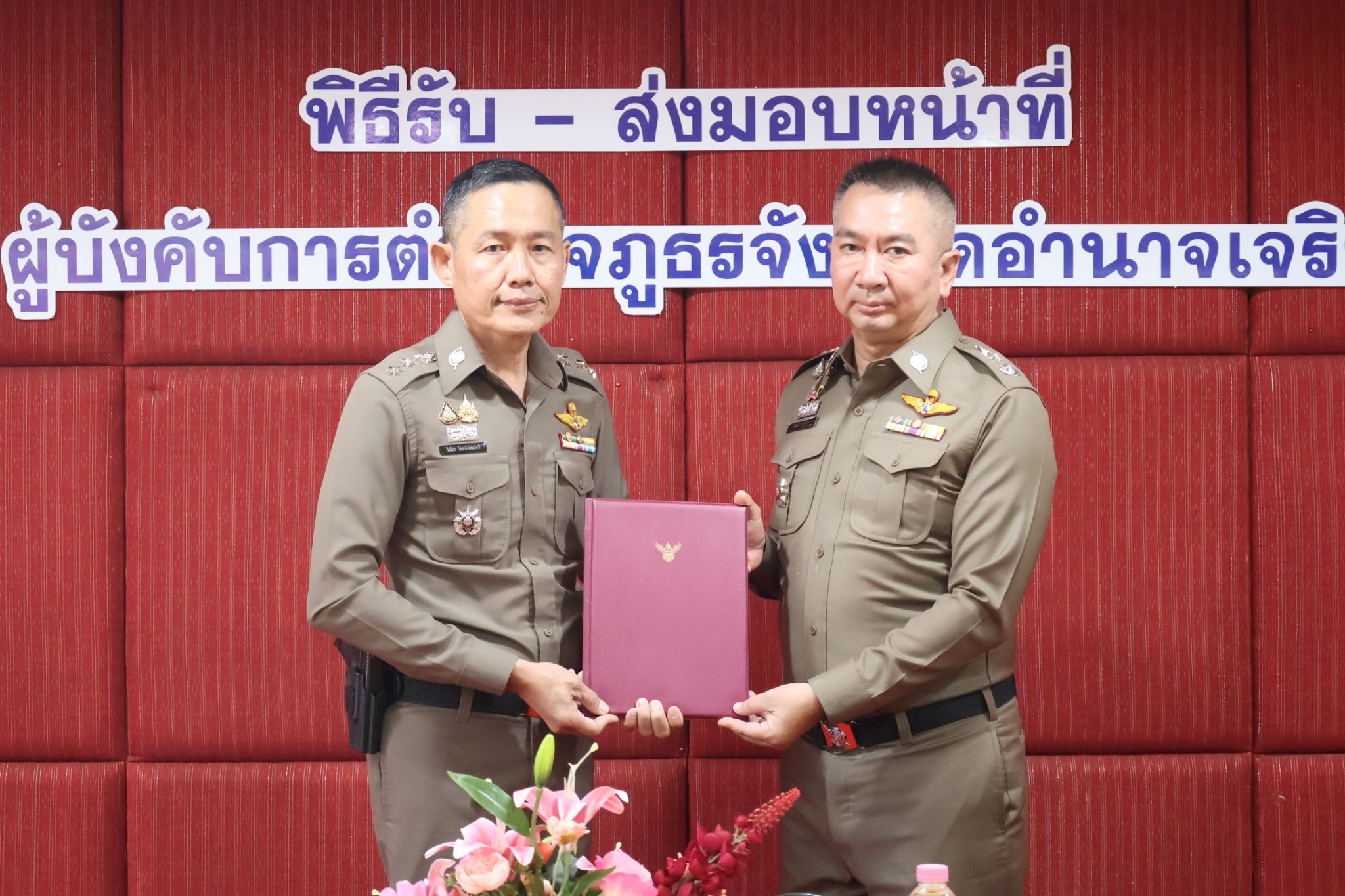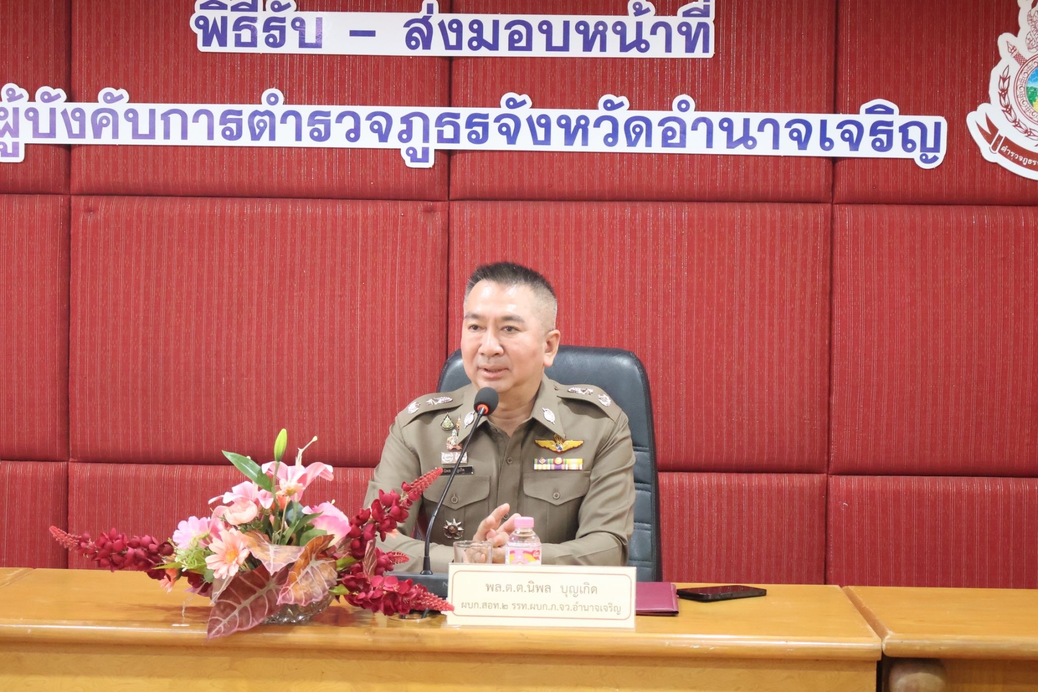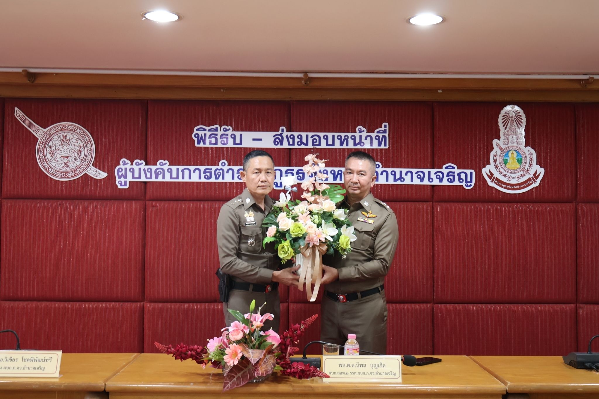 พล.ต.ต. นิพล บุญเกิด ผบก.สอท.2 รรท.ผบก.ภ.จว.อำนาจเจริญ เดินทางรับตำแหน่ง ผบก.ภ.จว.อำนาจเจริญ พร้อมได้สักการะสิ่งศักดิ์สิทธิ์ประจำจังหวัดอำนาจเจริญ และไหว้ศาลหลักเมือง เดินทางเข้าภ.จว.อำนาจเจริญ ทำพิธีรับ ส่ง มอบหน้าที่ จาก พ.ต.อ.วิเชียร โชคพิพัฒน์ทวี รอง ผบก.ฯ รรท.ผบก.ภ.จว.อำนาจเจริญ โดยมี พ.ต.อ.ชัชนันต์ พรบุตร ,พ.ต.อ.สุทธกาญจน์ ฟักทอง รอง ผบก.ภ.จว.อำนาจเจริญ ข้าราชการตำรวจส่วนกลาง, หน.สภ.ในสังกัด ร่วมพิธี และต้อนรับ ณ ห้องประชุม ภ.จว.อำนาจเจริญ