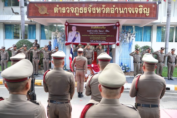 วันนี้(18 ก.ย.68)เวลา 14.00น. พล.ต.ท.วัฒนา  ยี่จีน ผบช.ภ.3 พร้อมด้วย พล.ต.ต.ประสงค์ เรืองเดช รอง จตร.รรท.รอง ผบช.ภ.3 ตรวจเยี่ยมและประชุมสรุปผลการปฏิบัติรายการประจำปีงบประมาณพ.ศ.2568 ณ ภ.จว.อำนาจเจริญ โดยมี พล.ต.ต.นิพล บุญเกิด ผบก.ภ.จว.อำนาจเจริญ พ.ต.อ.จักรกฤษณ์ โพธิ์กราน รองผบก.ภ.จว.อำนาจเจริญ หน.สภ.ฯ ข้าราชการตำรวจ กองเกียรติยศ ให้การต้อนรับ ณ ภ.จว.อำนาจเจริญ