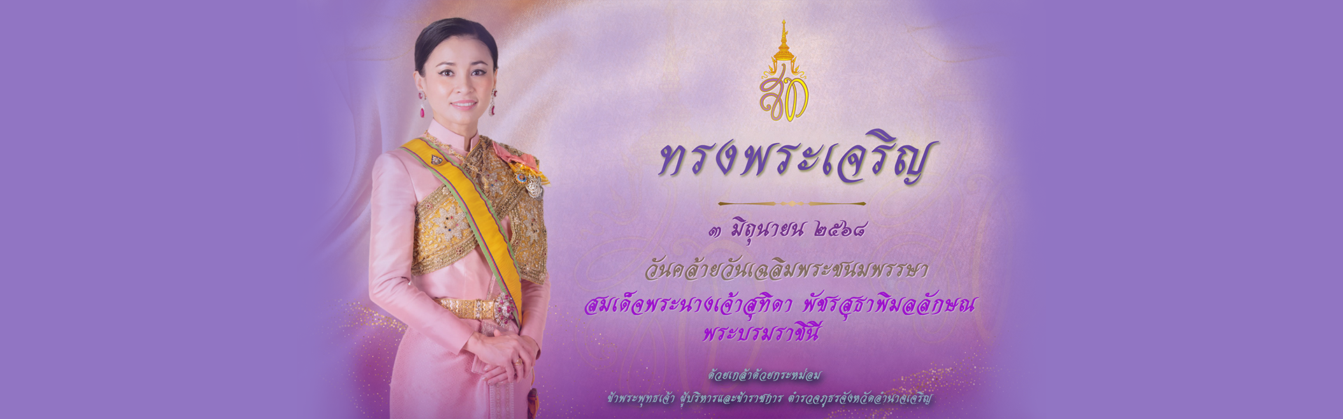 พิธีเจริญพระพุทธมนต์ และพิธีทำบุญตักบาตร เฉลิมพระเกียรติสมเด็จพระนางเจ้าสุทิดา พัชรสุธาพิมลลักษณ พระบรมราชินี เนื่องในโอกาสวันเฉลิมพระชนมพรรษา 3 มิถุนายน 2568